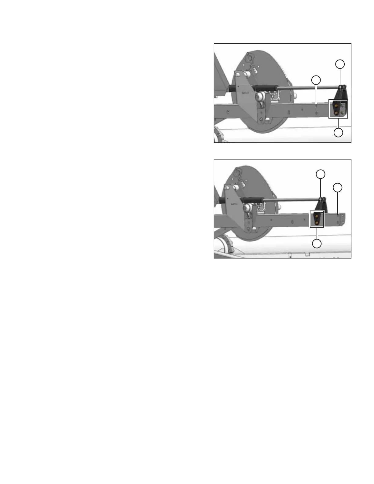 8. Reinstall the four bolts (A) to secure bracket to reel arm at