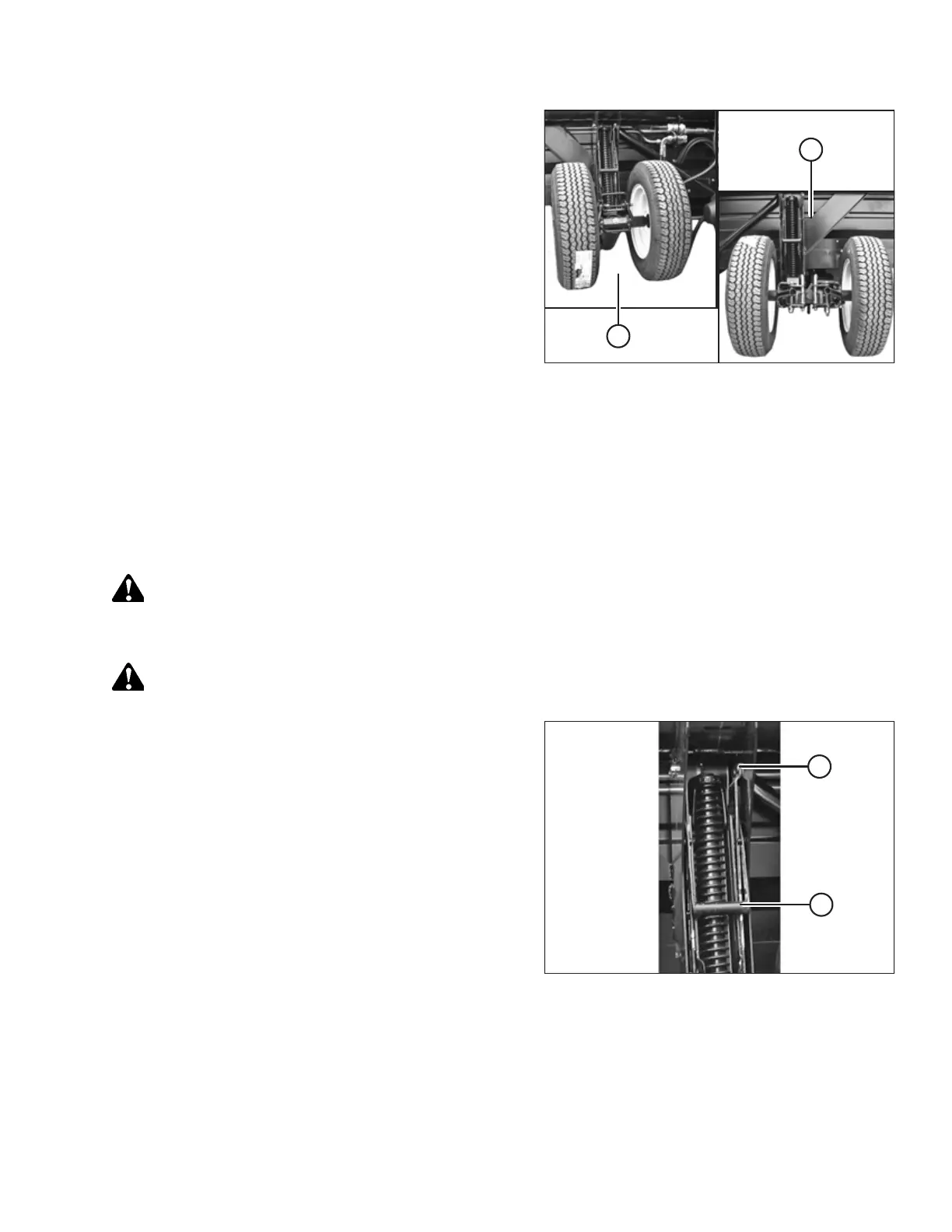 The front (left) wheels are located closest to the towing vehicle. To prepare for transport, the wheels must be lowered to