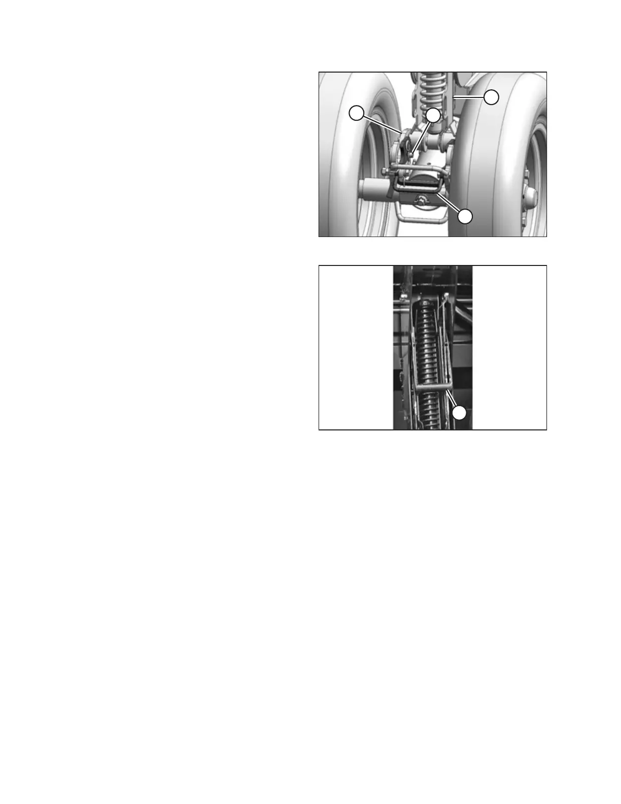 6. Pull latch handle (B) to release suspension linkage (C), and
