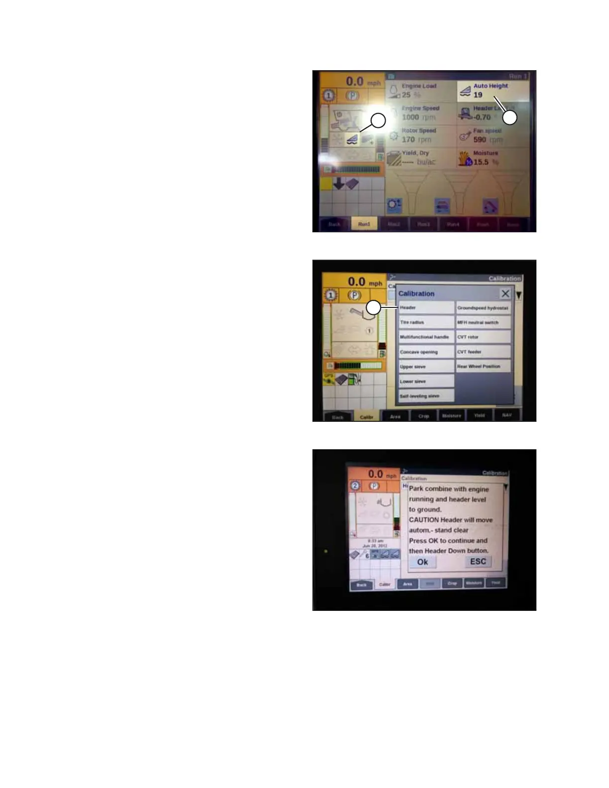 10. Select CALIBRATION on the combine display and press the