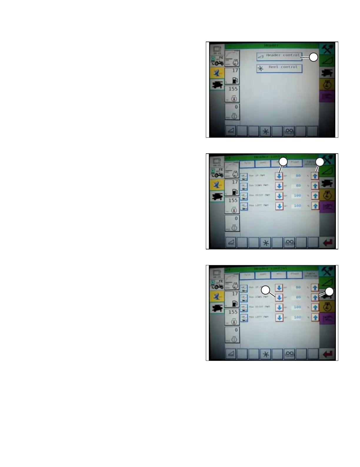 which the header rises; press down arrow (B) on MAX UP