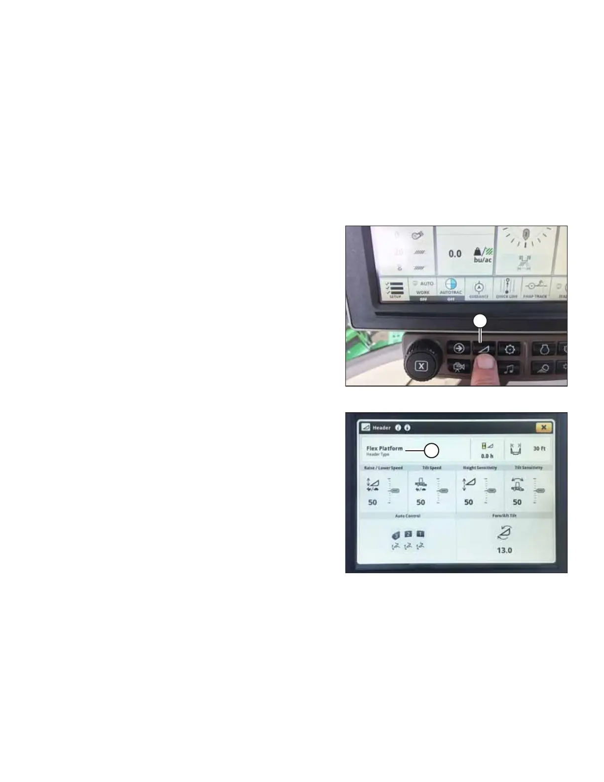 must set your combine’s header configuration options for the particular model of header, configure the reel speed settings,