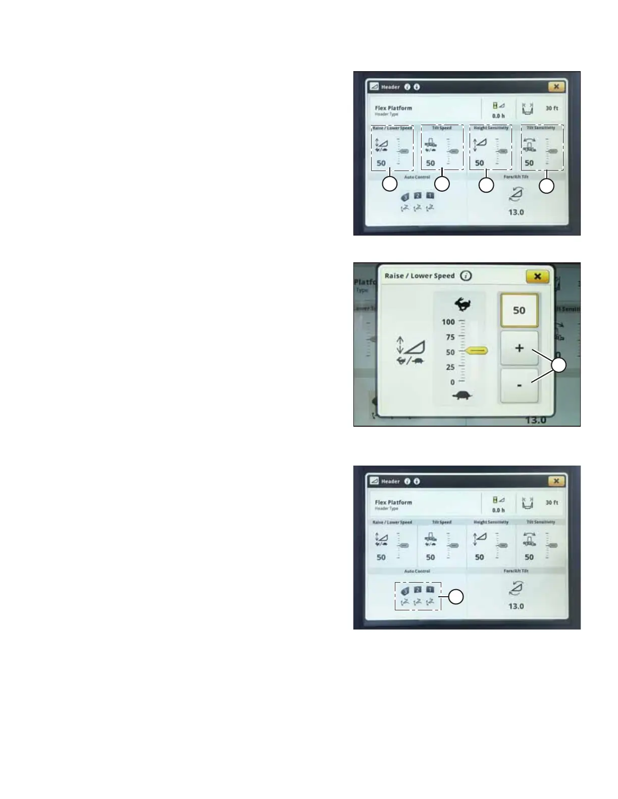 Figure 4.254: John Deere S7 Display – Raise/Lower