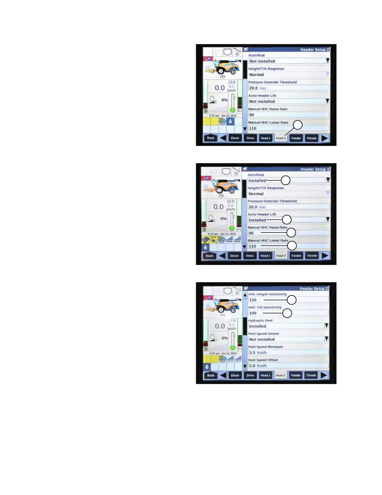 9. Select the AUTO HEADER LIFT drop-down arrow and set