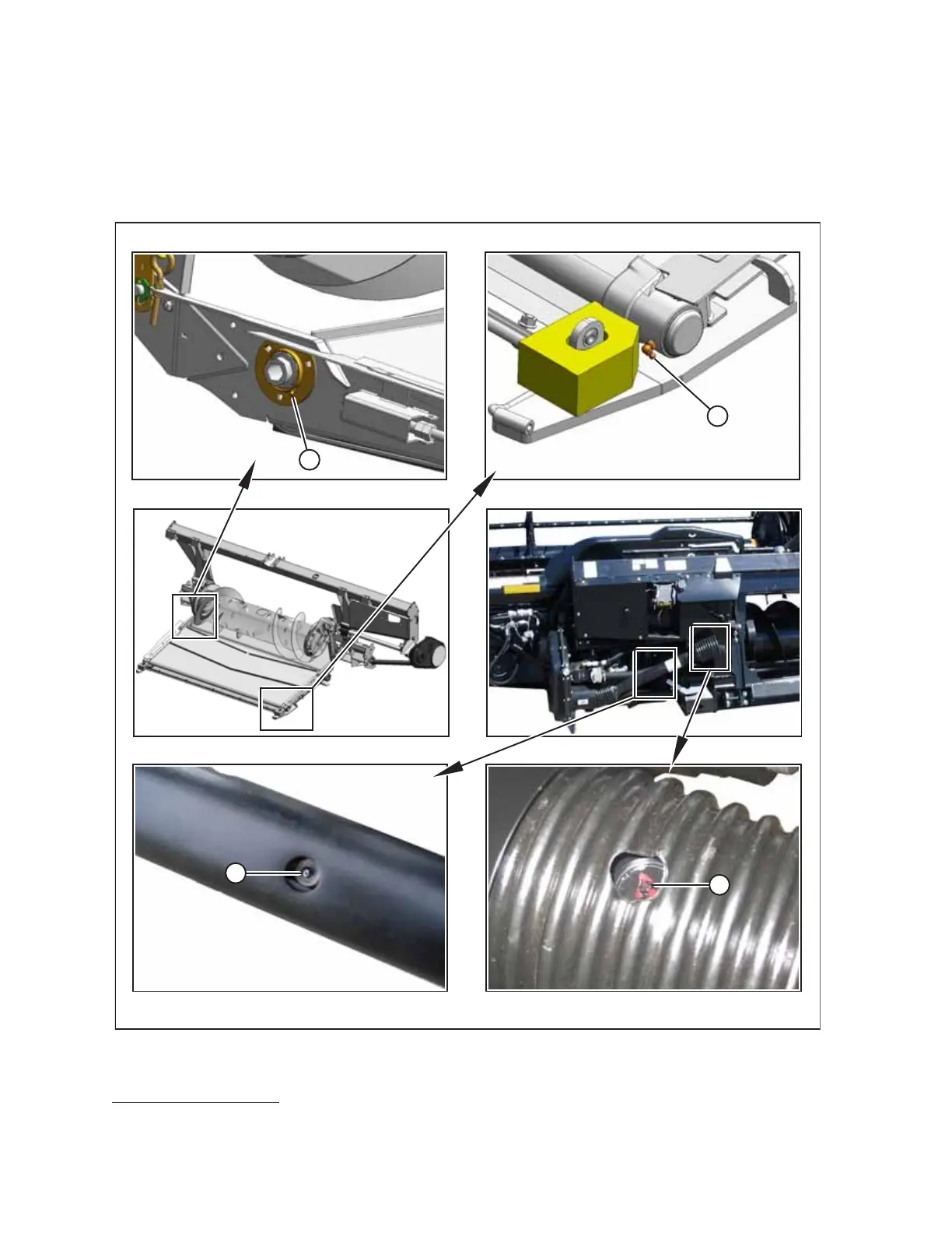 A - Drive Roller Bearing B - Idler Roller Bearing (Both Sides) C - Driveline Slip Joint