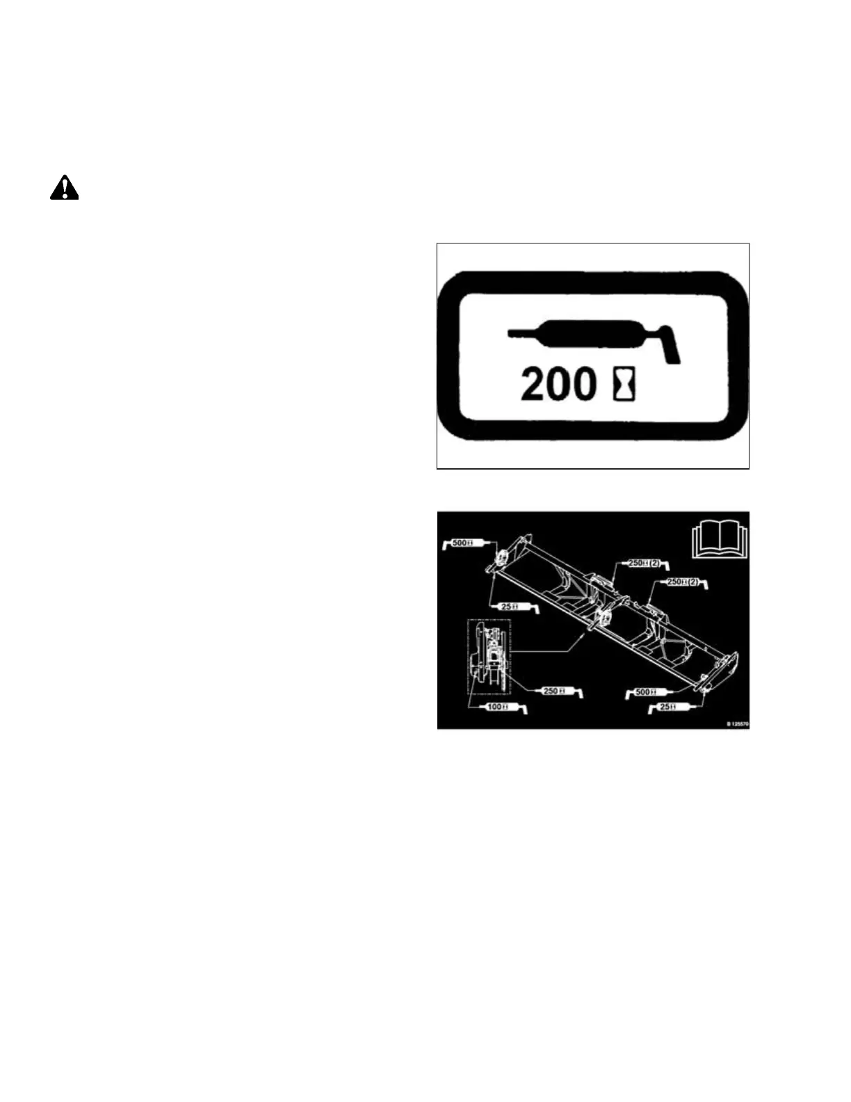 Greasing points are marked on machine by decals showing a grease gun and grease interval in hours of operation. Master