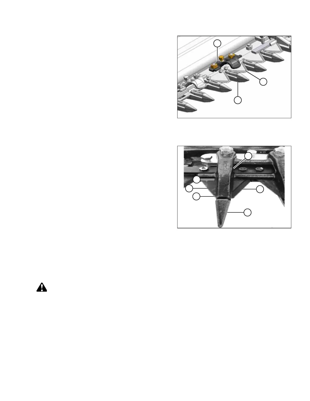 For the center guard, refer to Adjusting Hold-Down Clips at Double-Knife Center Pointed Guard, page 412.
