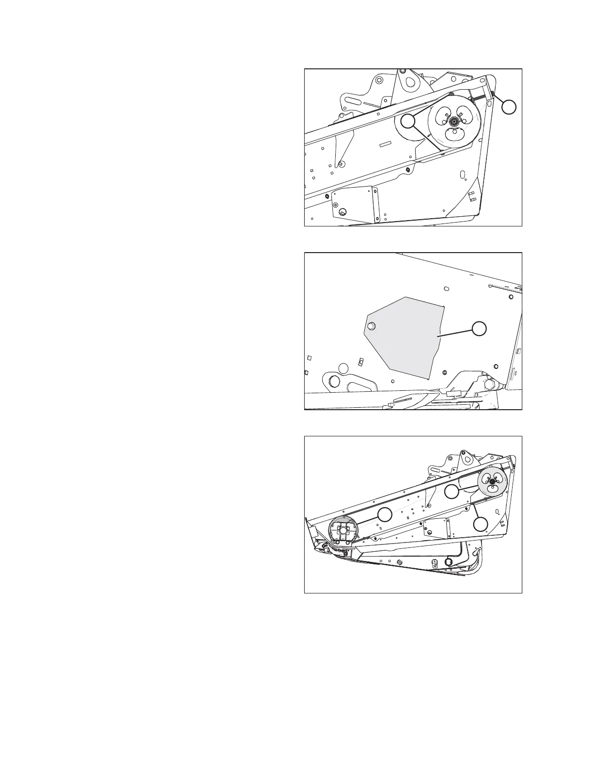7. Slip belt (A) over and behind knife drive box pulley (C). Use