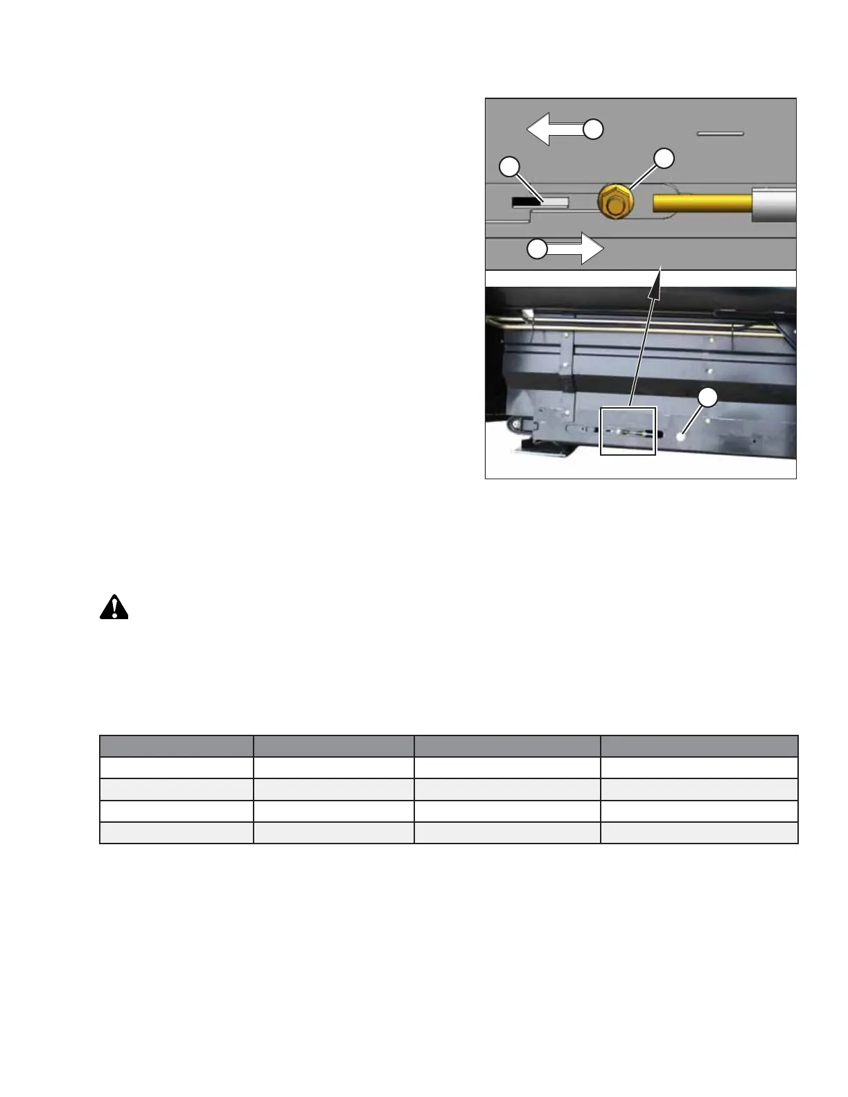 Each draper deck has fixed drive roller (A) and spring-loaded idler roller (B) that can be aligned using the adjuster rods so