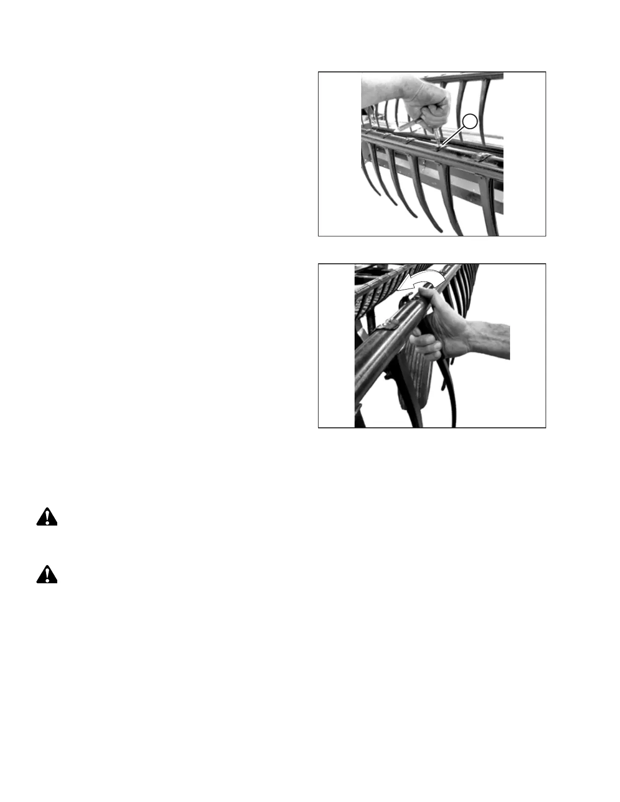 To prevent bodily injury from the fall of a raised reel, always engage the reel safety props before going under the