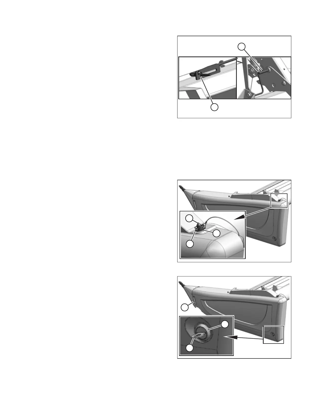 5. Double-reel headers, center reel arm: Use handle (B) to