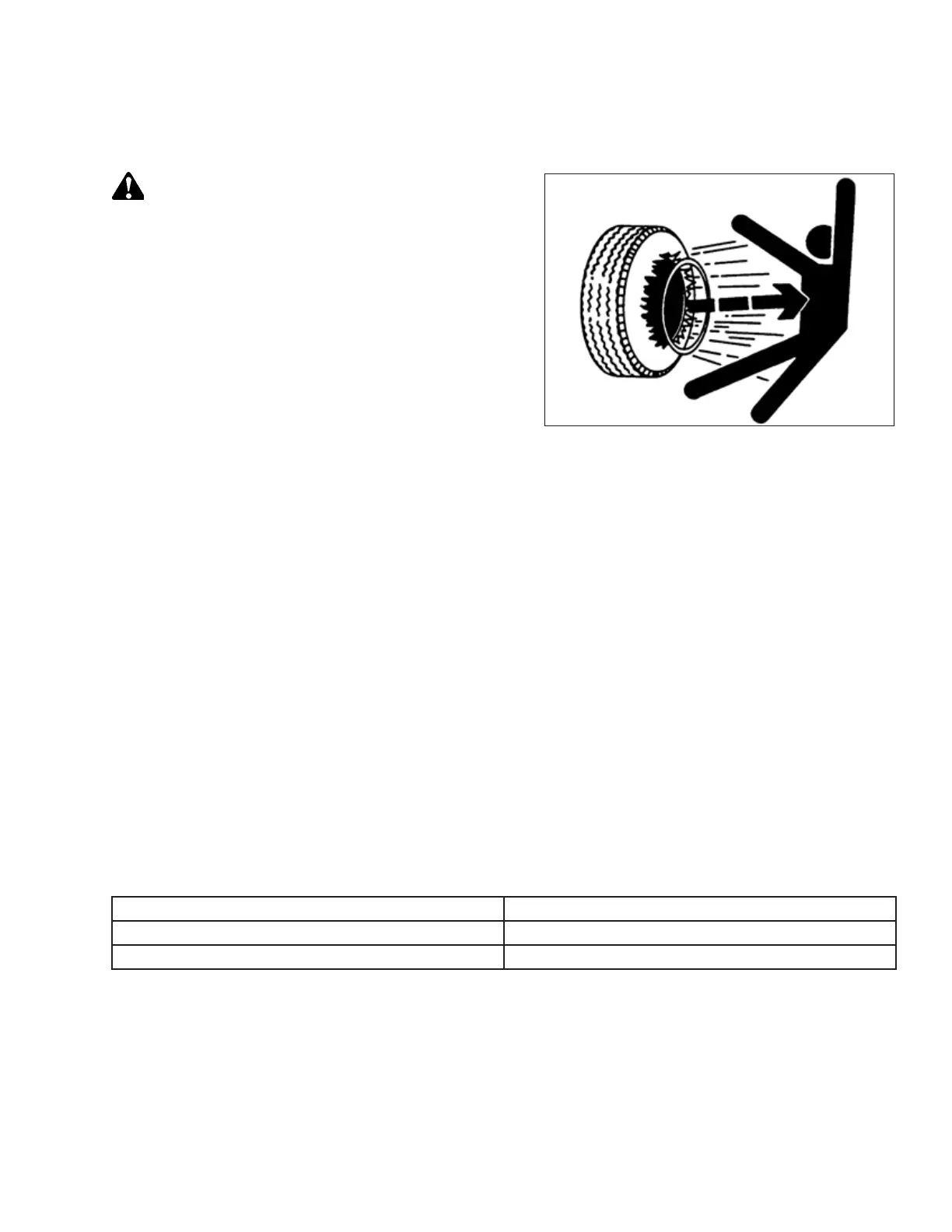• Make sure the tire is correctly seated before inflating it to operating pressure.