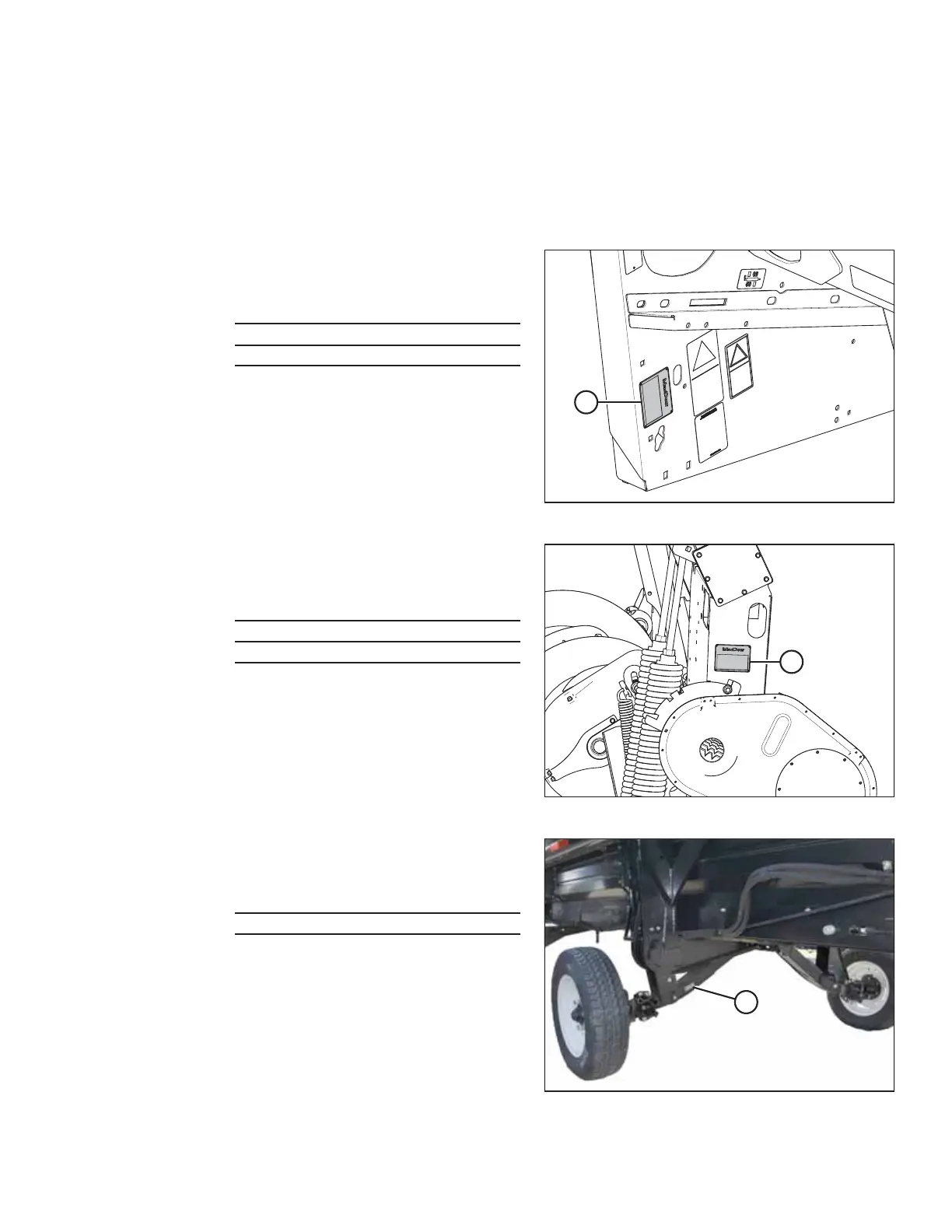 Record the model number, serial number, and model year of the header, combine adapter, and transport/stabilizer wheel