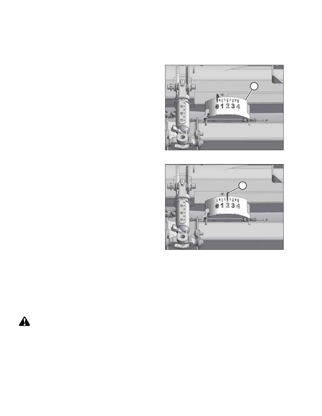 into the ground or leave uncut crop. This procedure describes how to check the header float and adjust it to the factory-