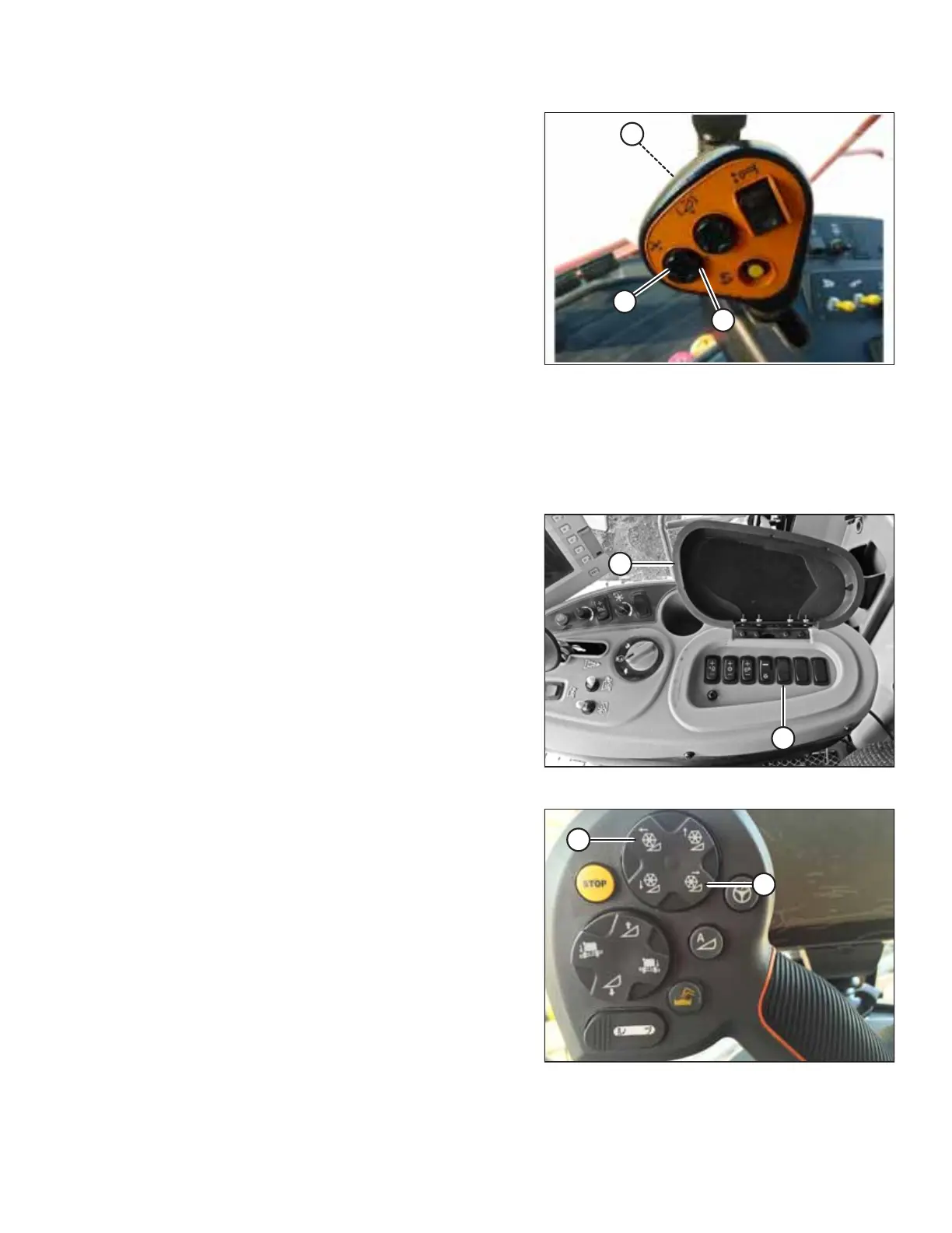 1. Gleaner A only: Open armrest cover (A) to expose a row of