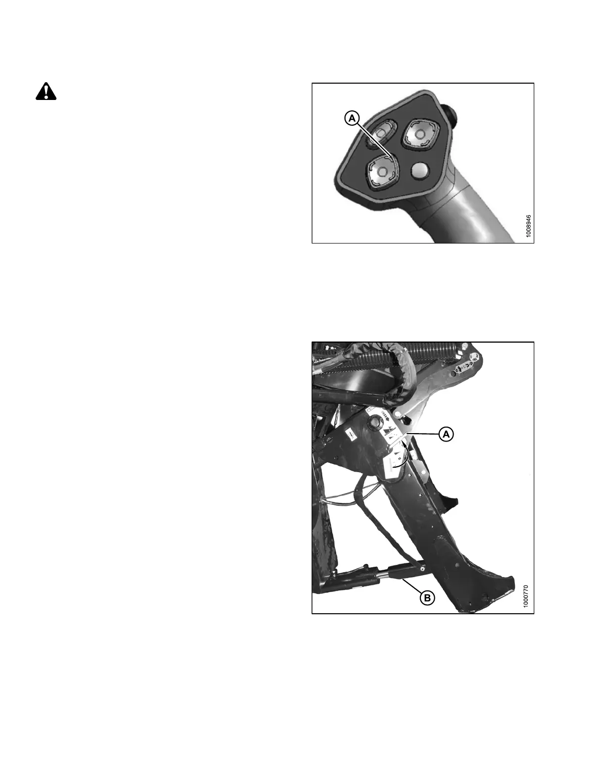 b. Pull lever (A) and rotate towards the header