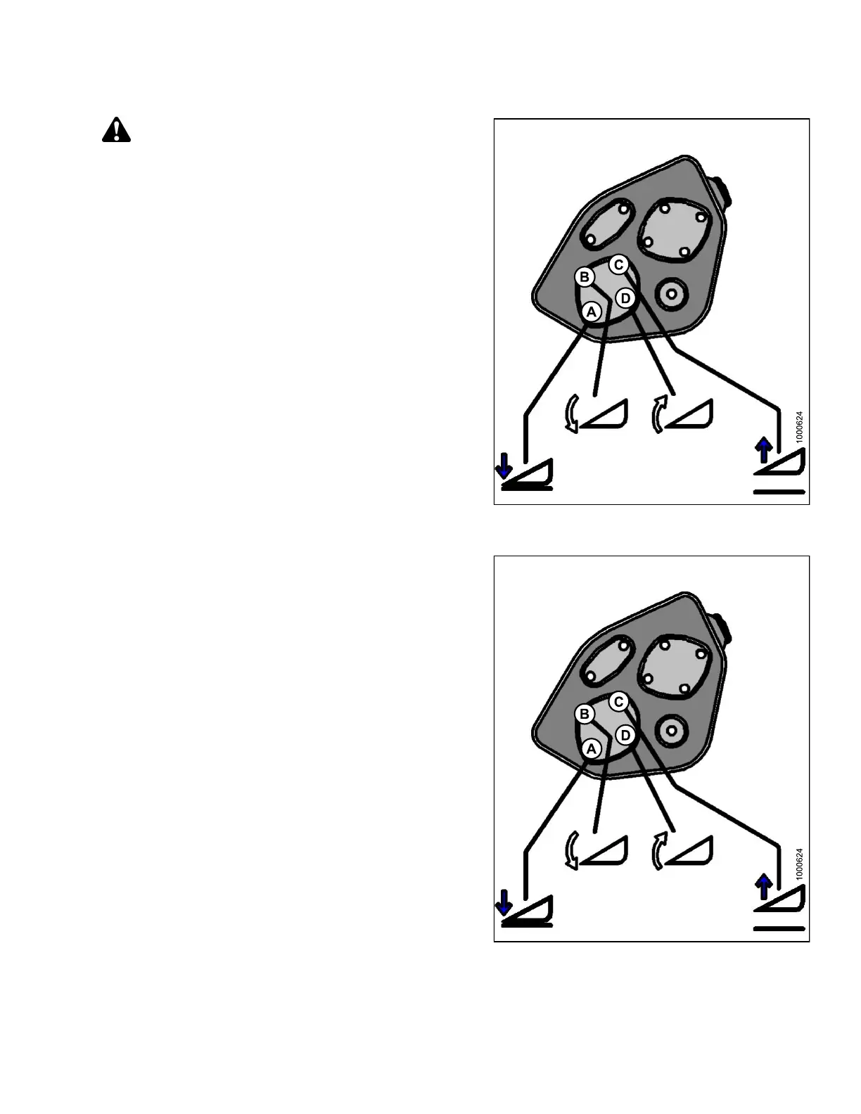8. Press and hold HEADER TILT RETRACT (D) button