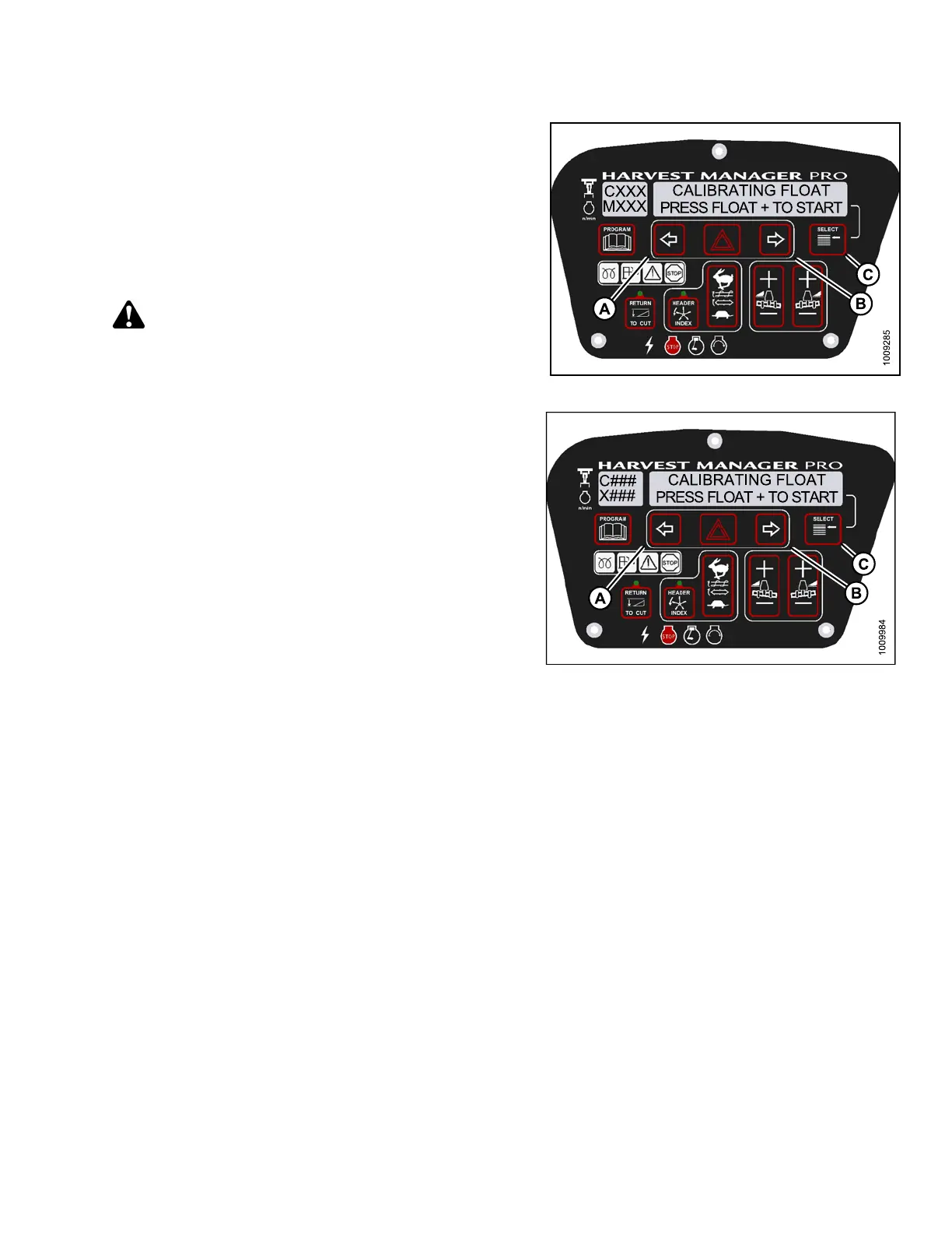 5. Press left (A) or right (B) arrow until HEADER FLOAT