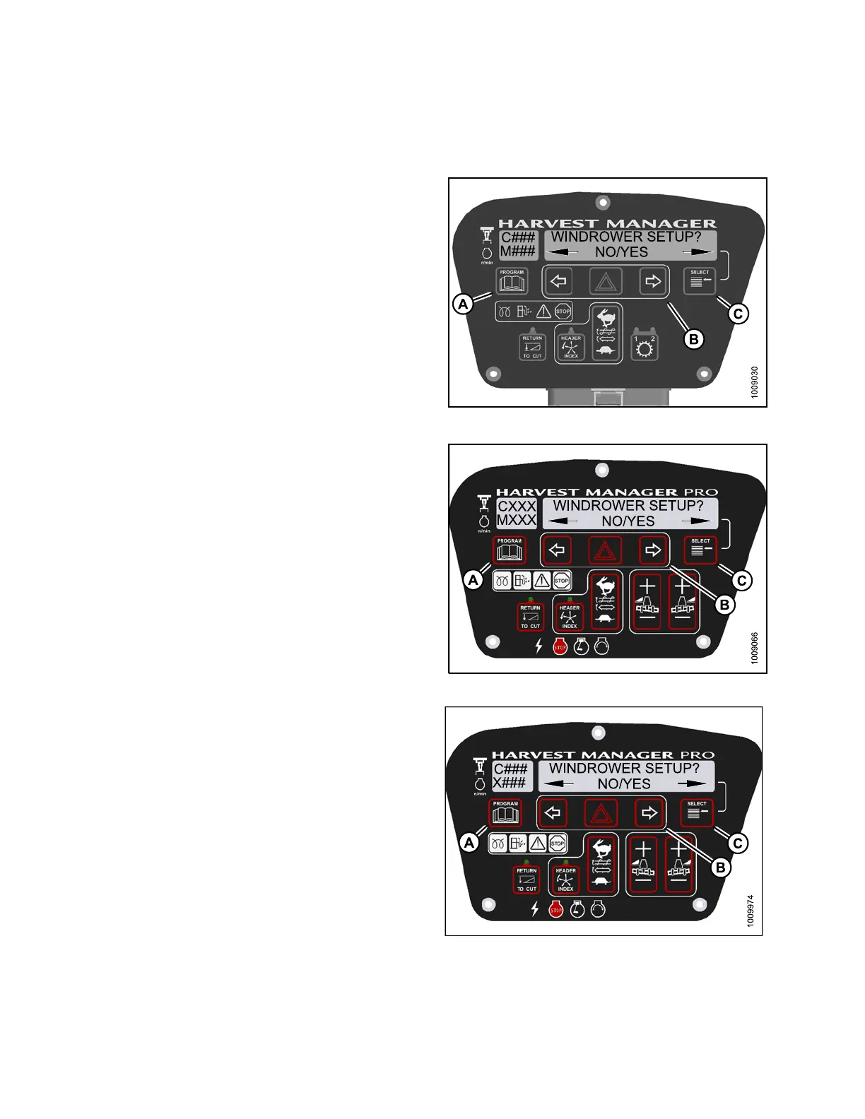 • WINDROWER SETUP? is displayed on the