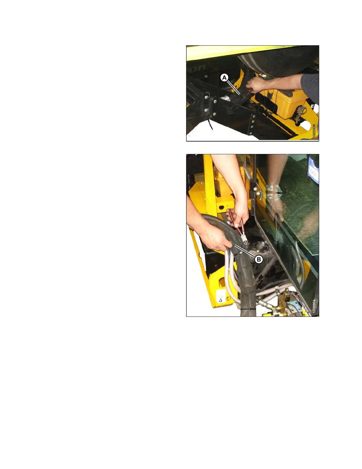 6. Remo ve th e plastic ca b le tie (A) and shippin g w ire (B)