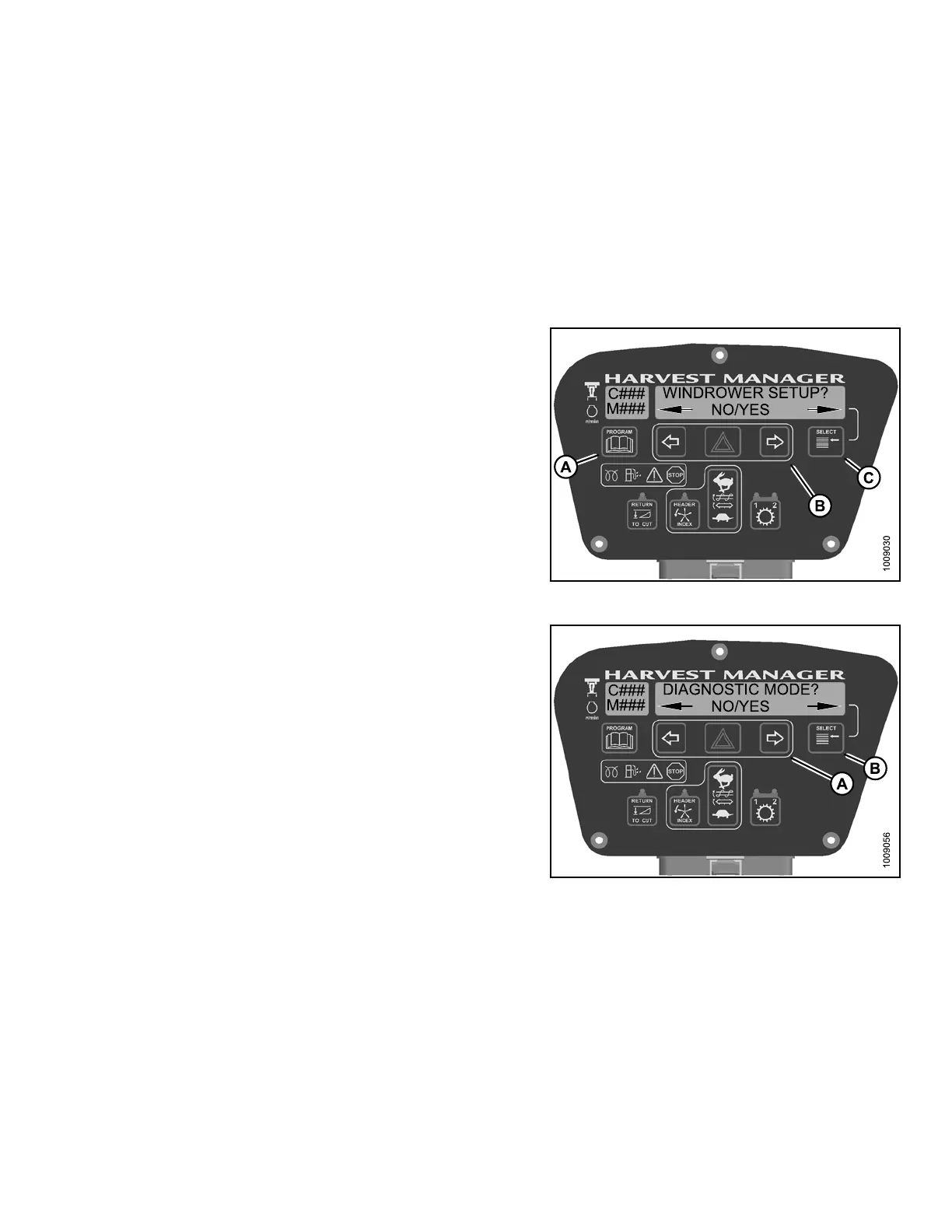 2. Press PROGRAM (A) and SELECT (C) on cab display