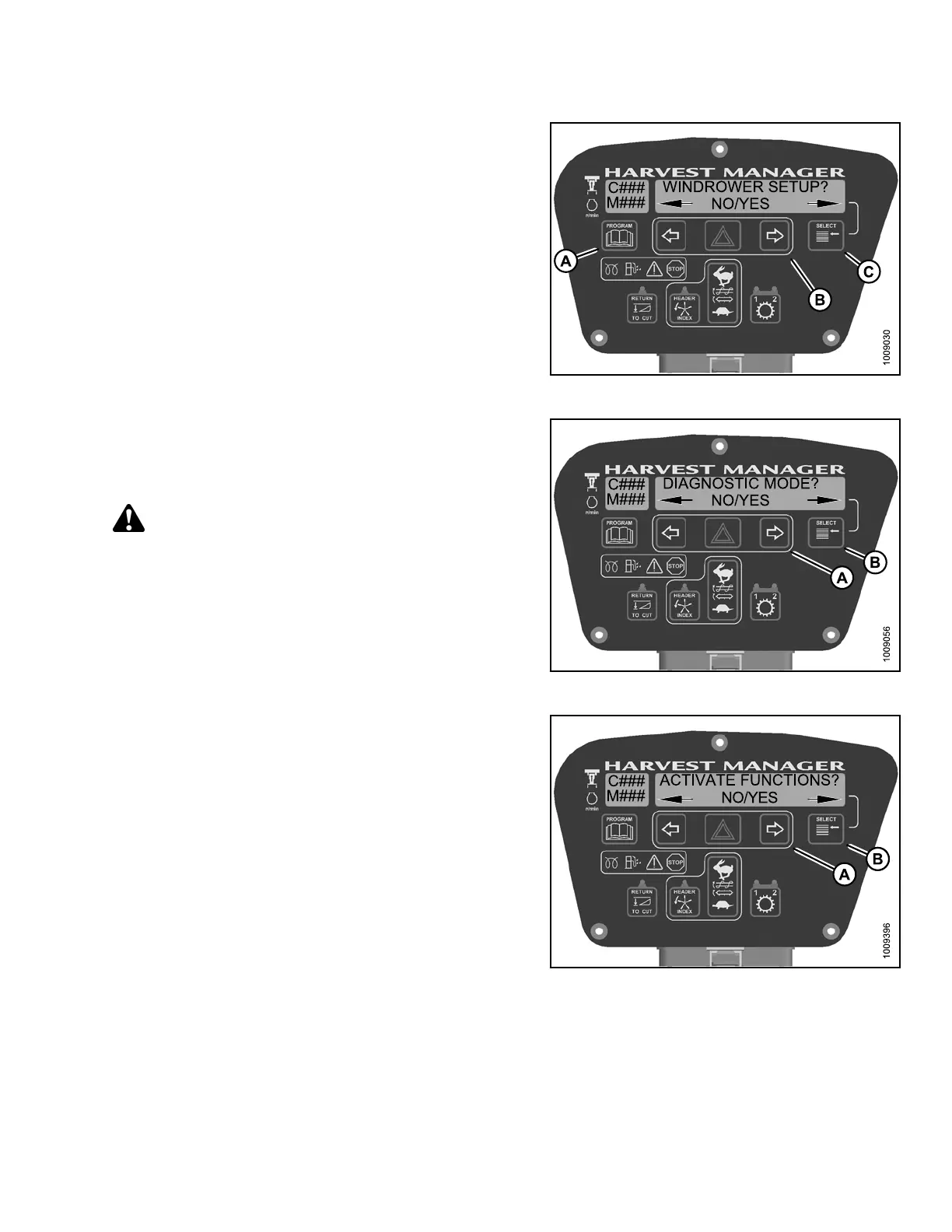 2. Press PROGRAM (A) and SELECT (C) on cab display