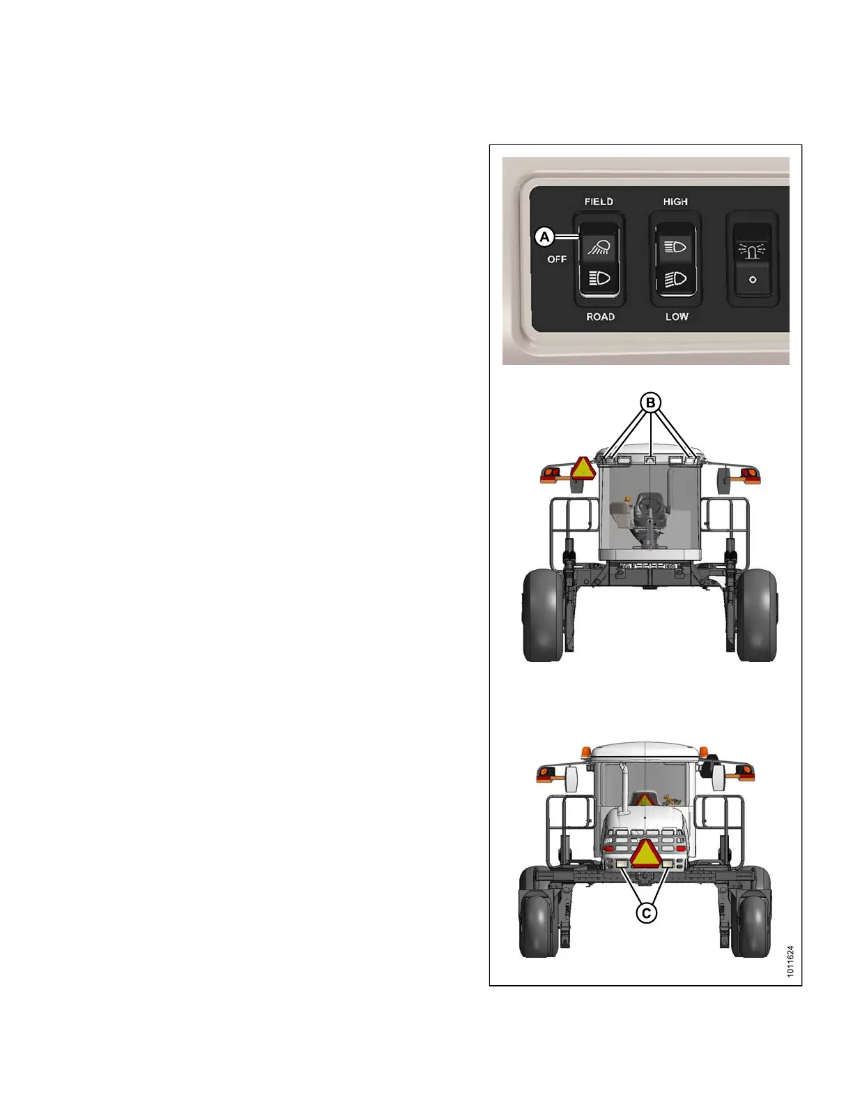 the fr ont field lights (B) and rear swath lights (C)
