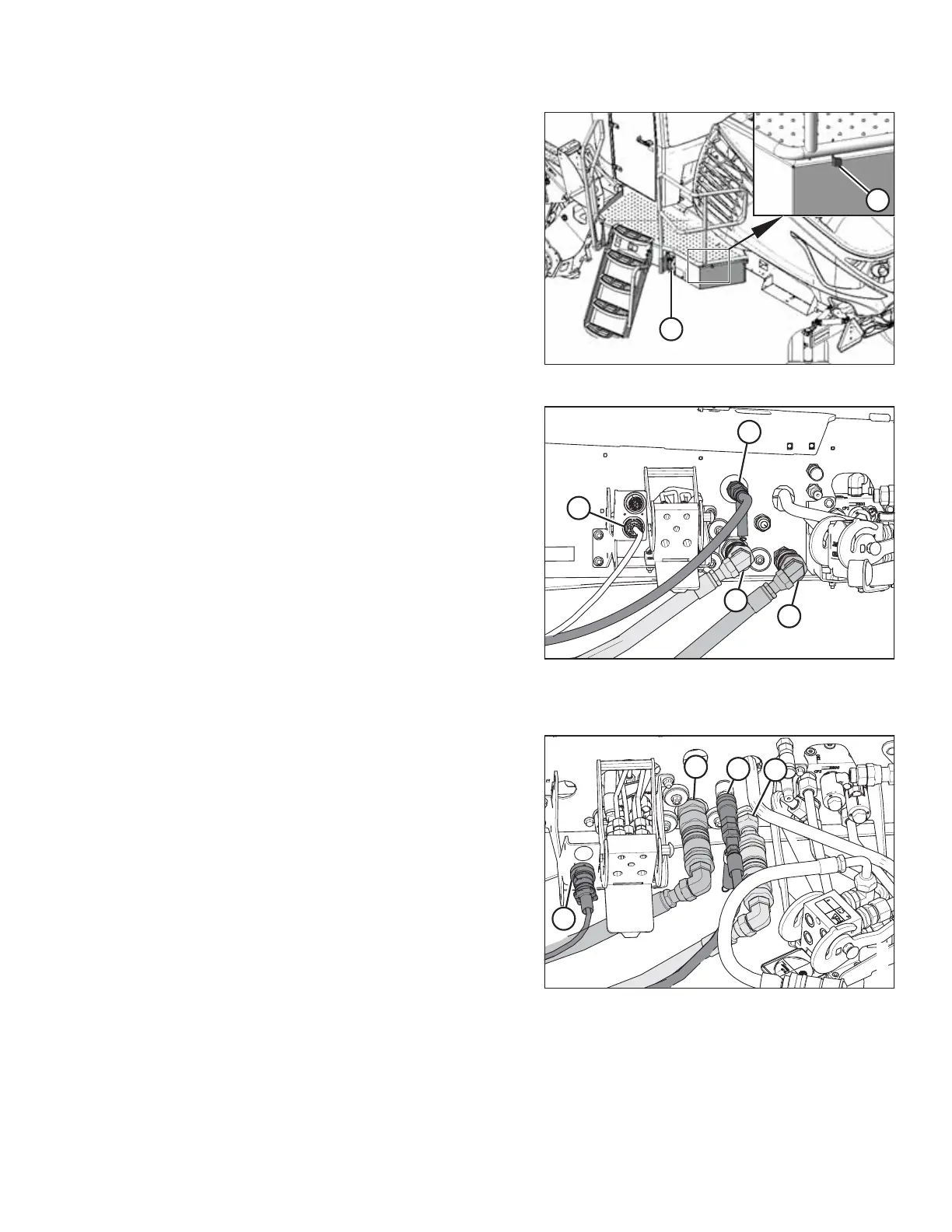 7. Disconnect electrical harness (D), and hydraulic hoses (A),
