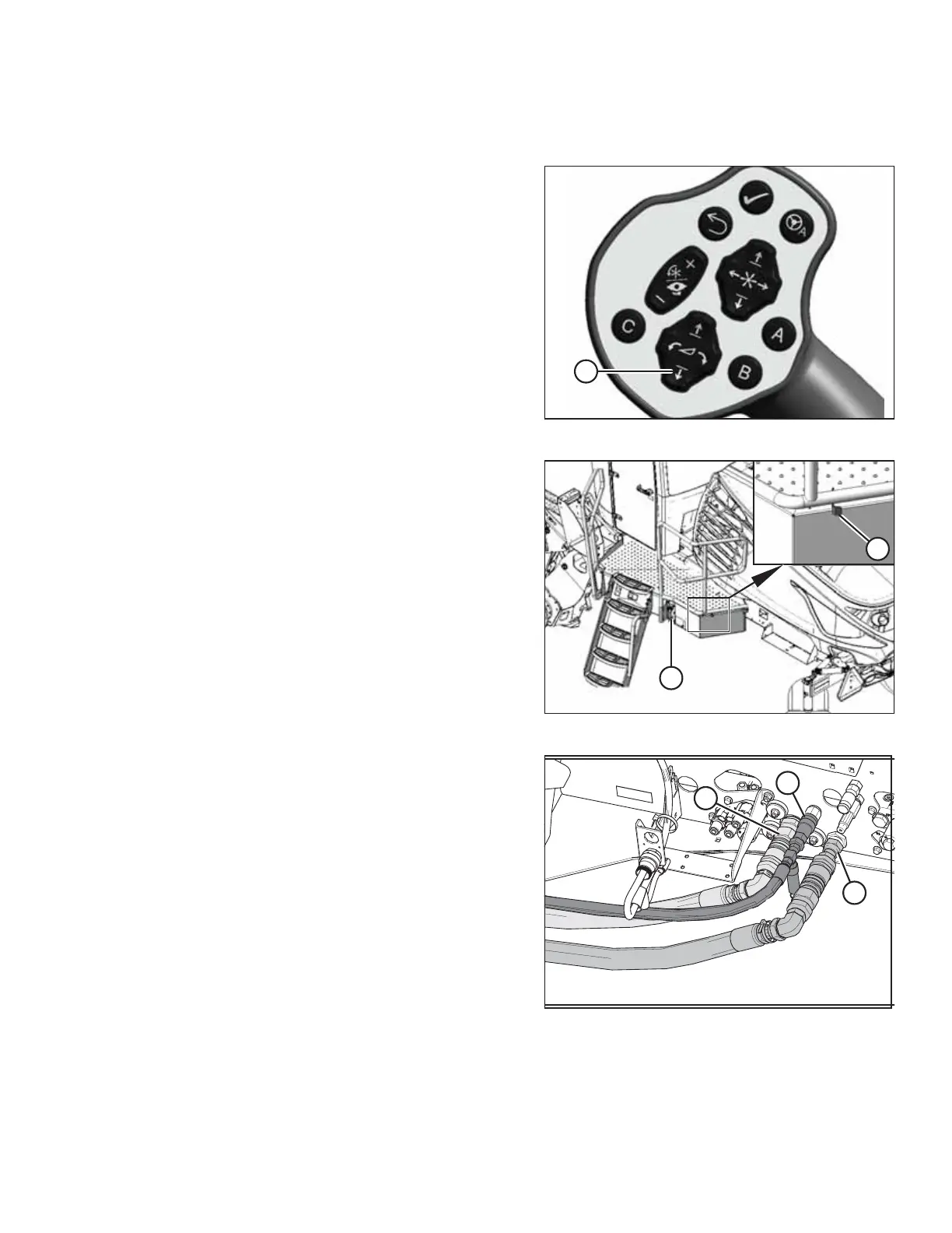 5. Disconnect hydraulic hoses (A), (B), and (C) from the