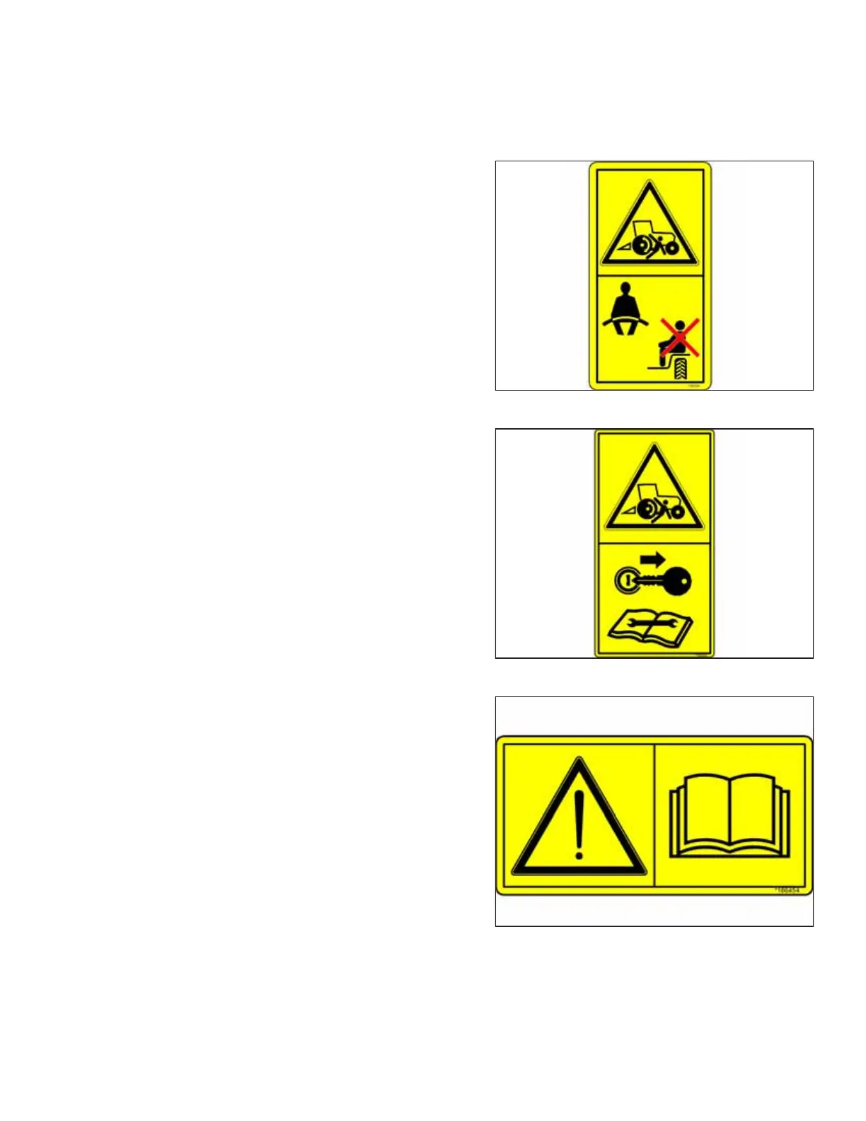 • Ensure that all safety signs are installed and legible.