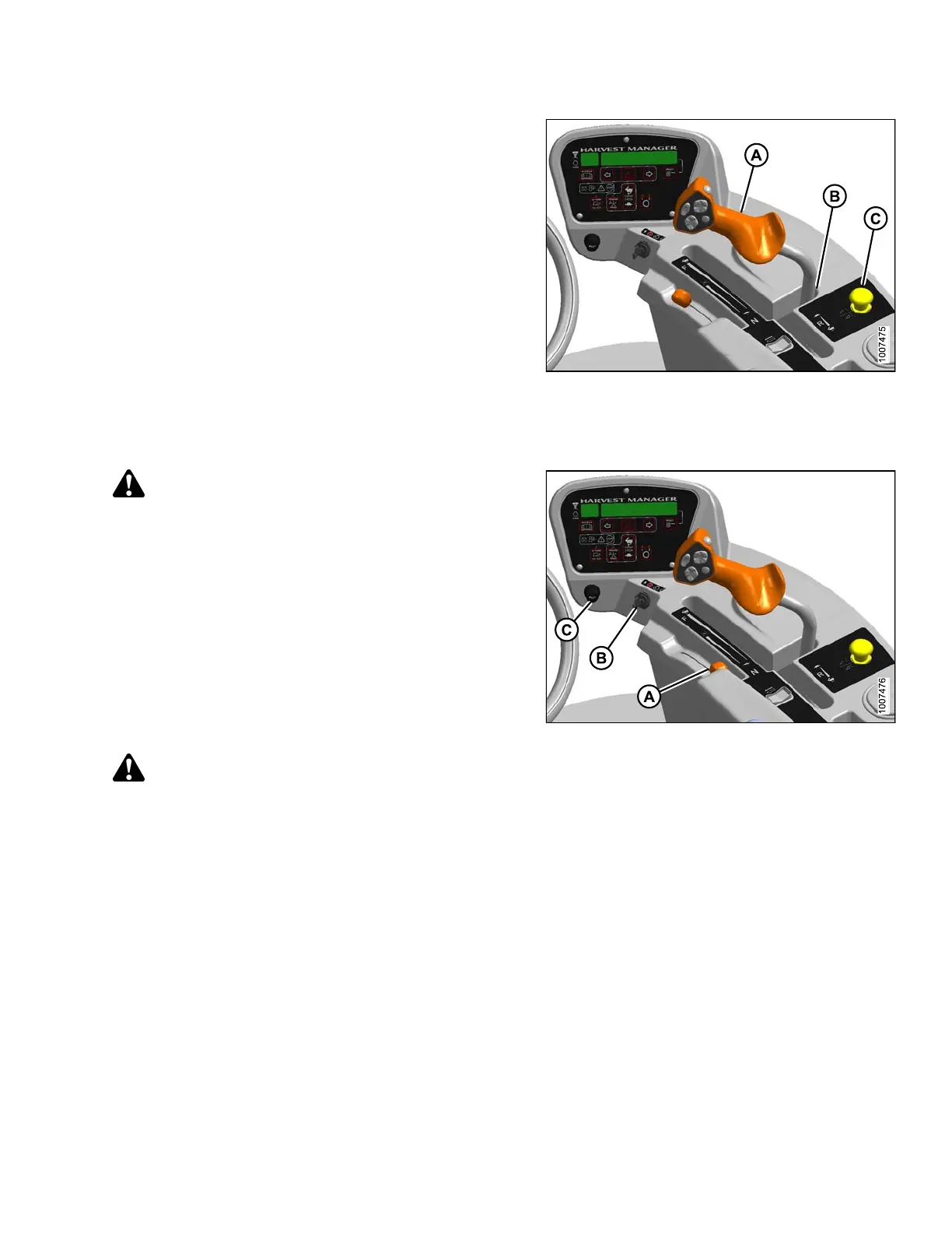 3. Turn ignition key (B) to RUN position. Single loud tone