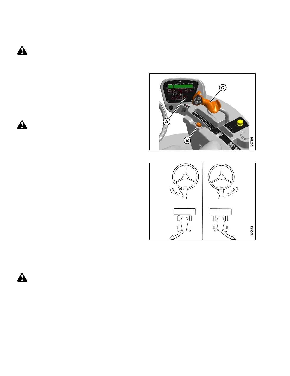 Be sure area is clear before making turns. Although windrower pivots on the spot, the ends of the header