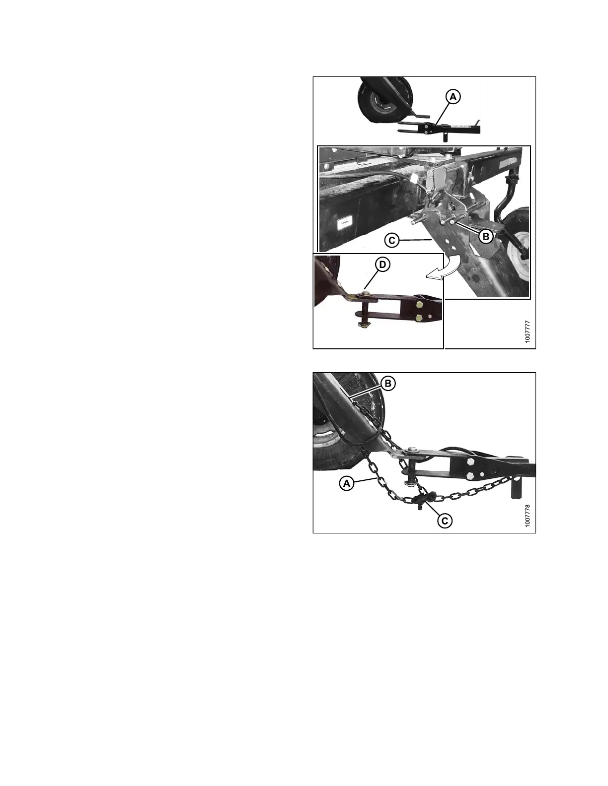 27. If the tow-bar (A) is TOO CLOSE to the windrower: