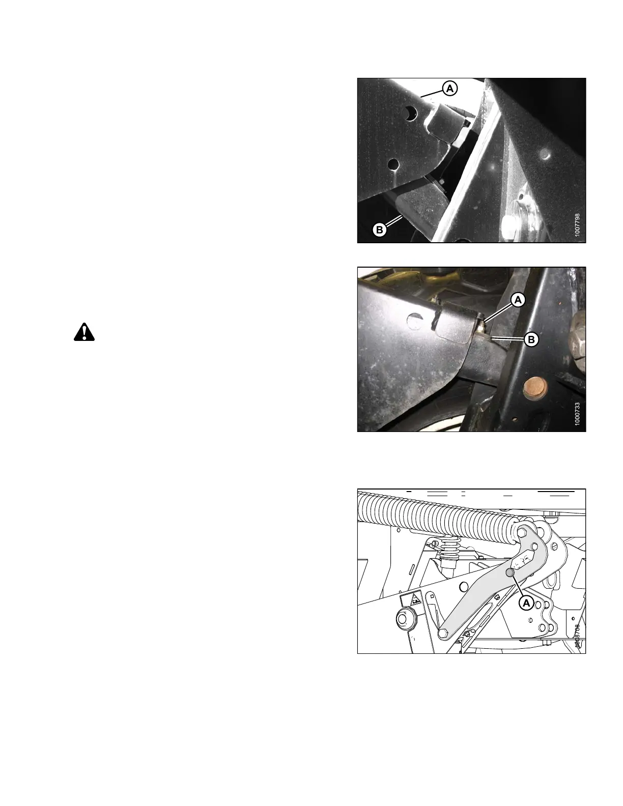 8. Remove one or both shims (B) and reinstall the
