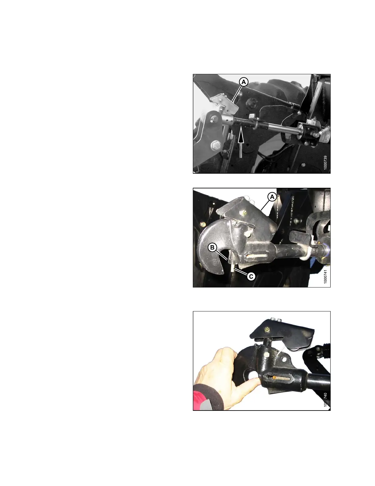 4. Push up on actuator rod (C) and lock pin should lift with