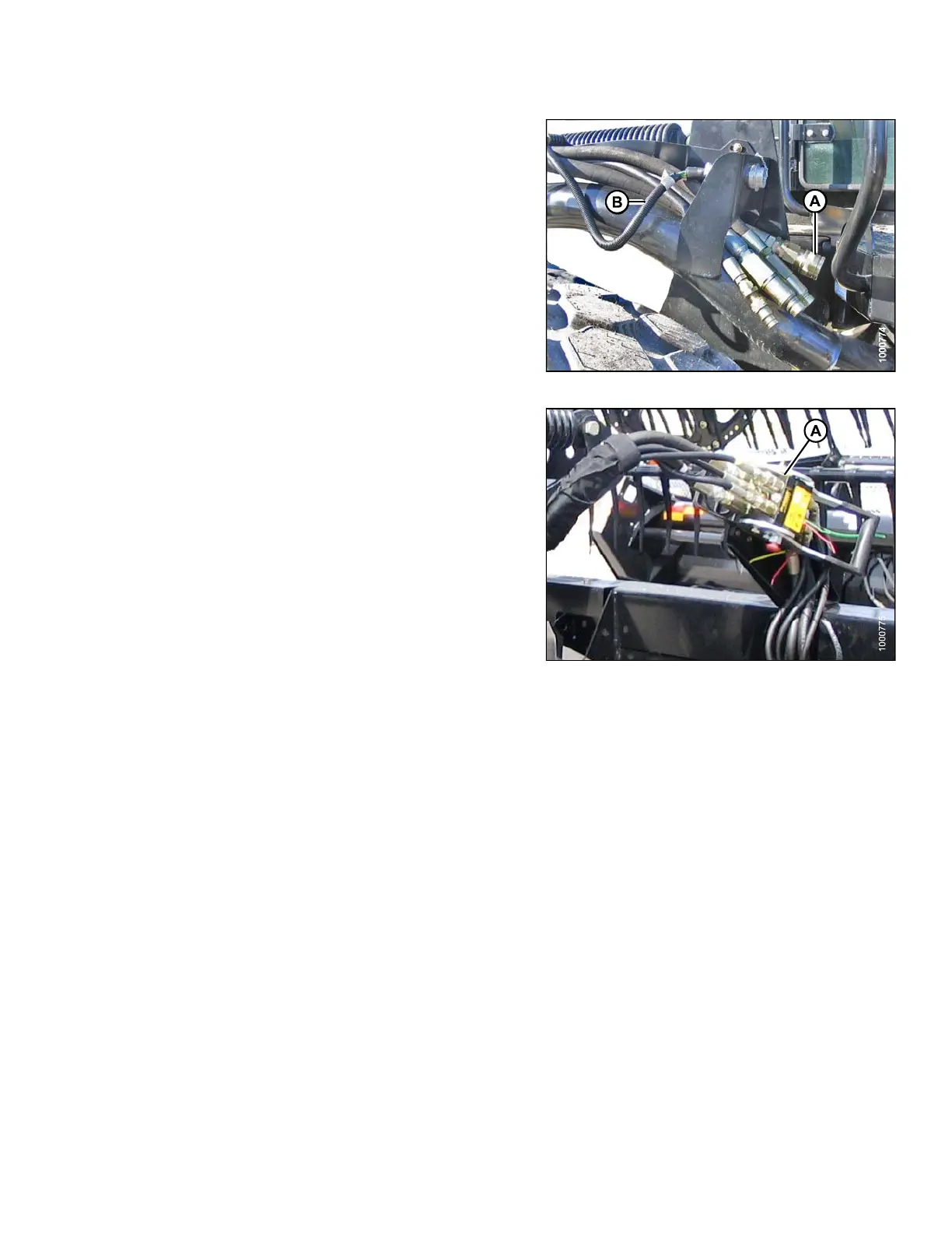 18. Connect header drive hoses (A) and electrical