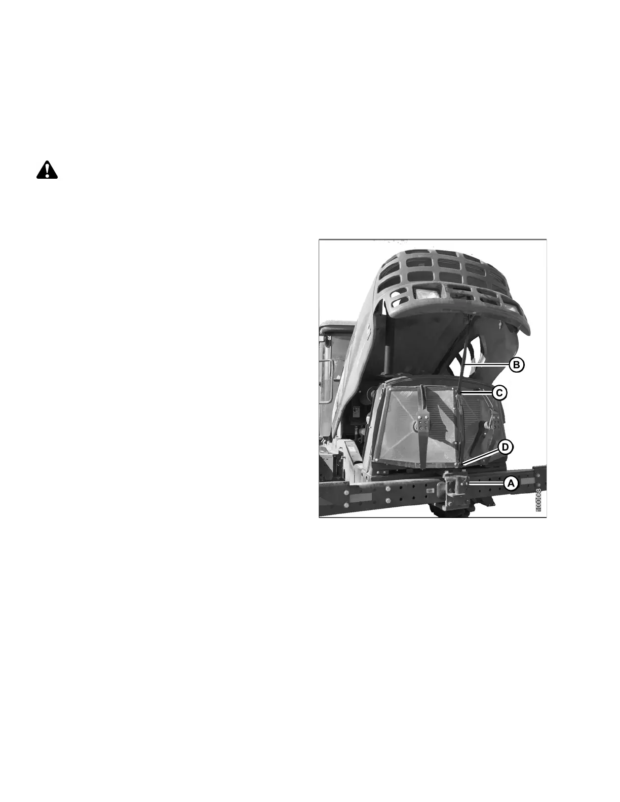 3. Raise hood until strap (B), which should be looped