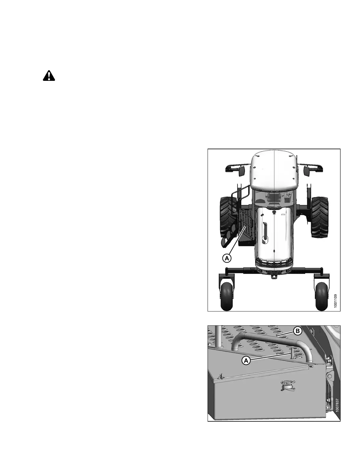 To improve access to the hydraulics plumbing or battery, the platform can be swung away from the windrower.