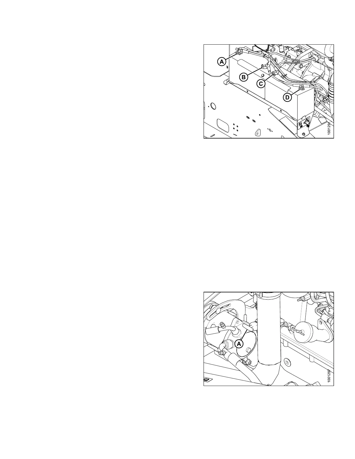 9. Attach negative (black) cables (B, D) to negative posts