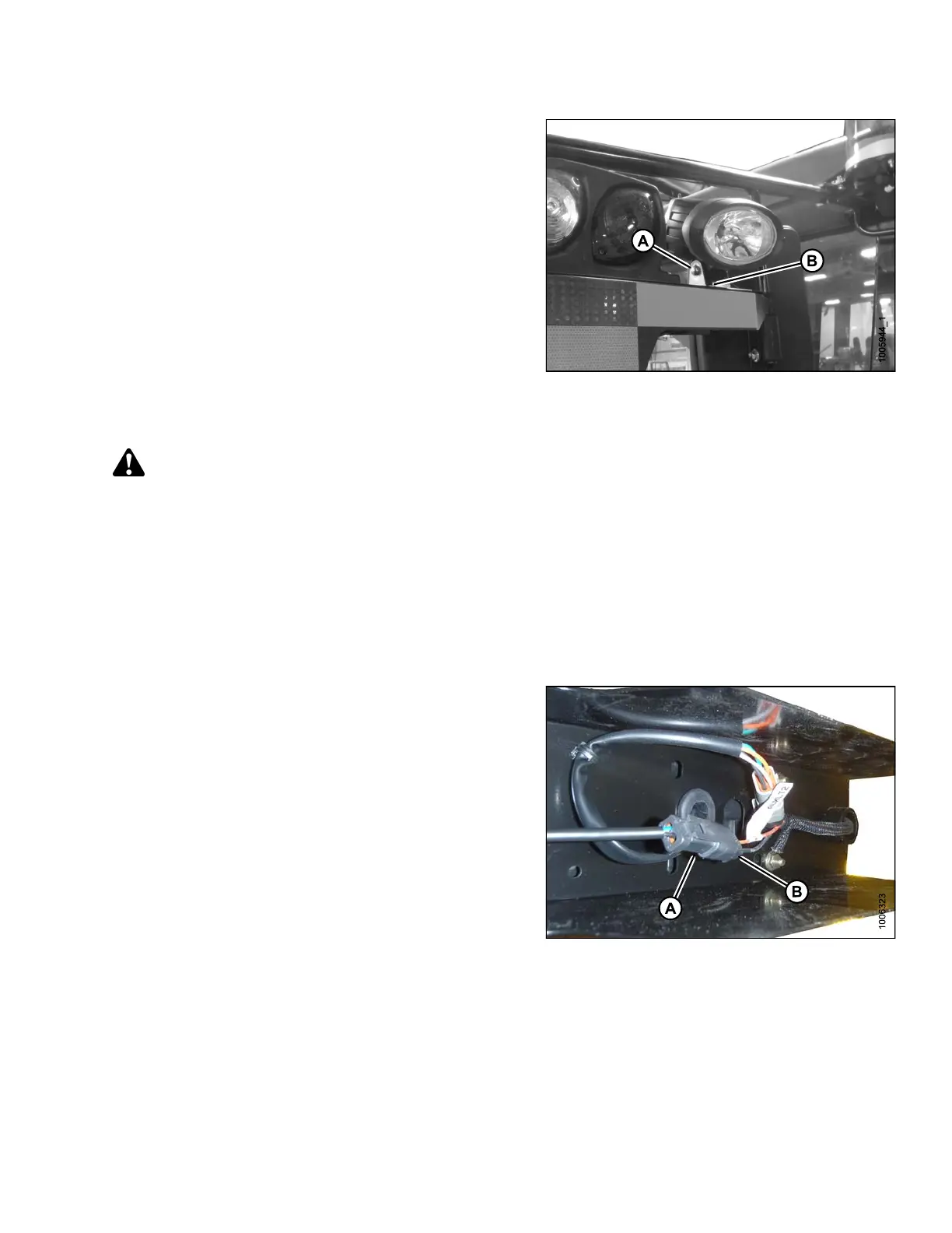 2. Loosen bolt (A) and nut (B) (located inside light /