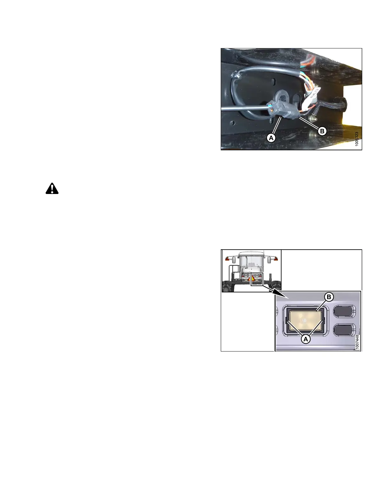 10. Connect lamp plug (A) to main harness connector (B).