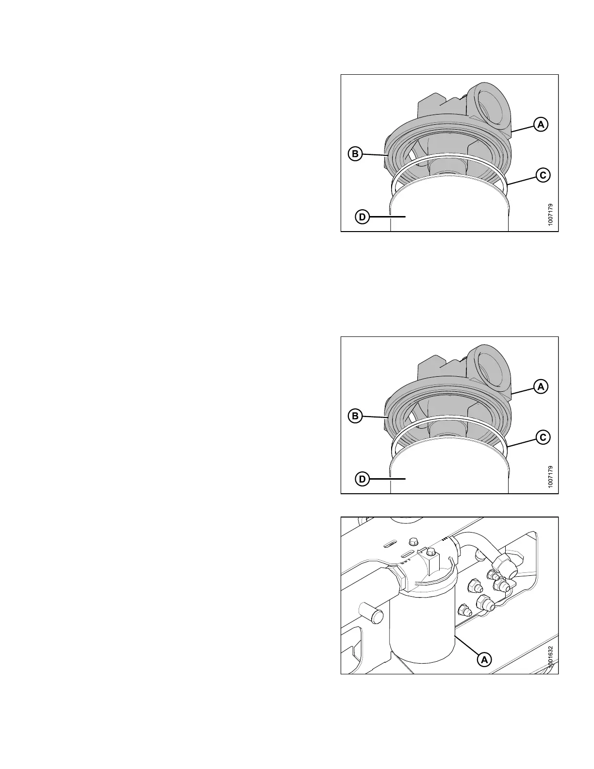 4. Screw the new filter (D) onto the filter head until the