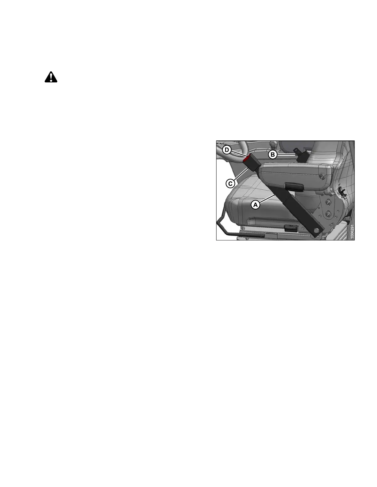 The windrower is equipped with a seat belt on the operator’s and trainer’s seats.