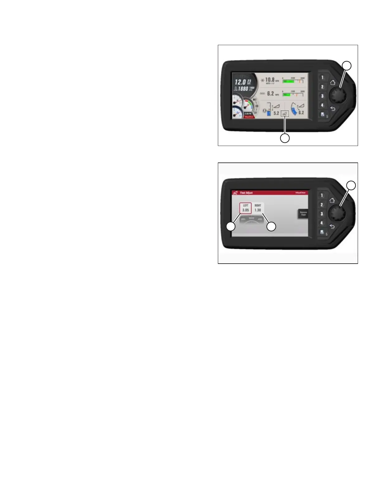 27. Turn scroll knob (A) to highlight left (B) or right (C) float and