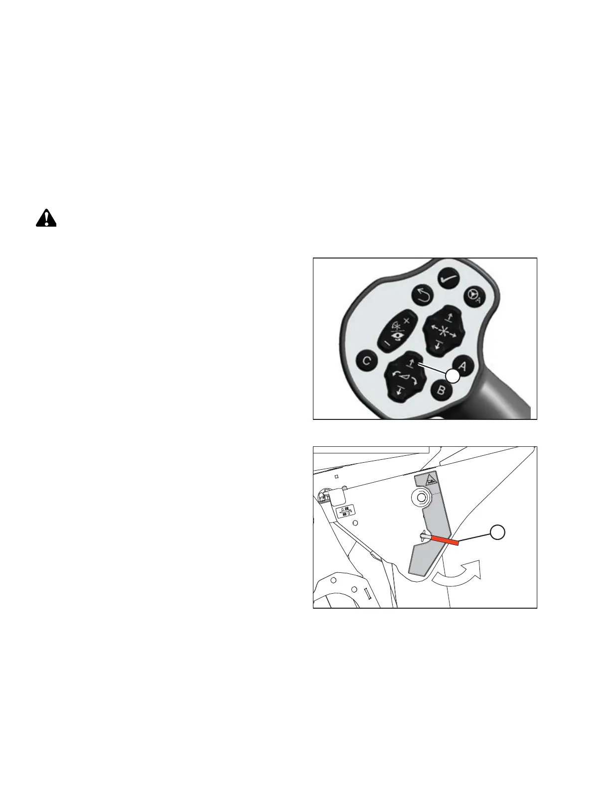 1. Start the engine. Press the HEADER UP (A) switch to raise