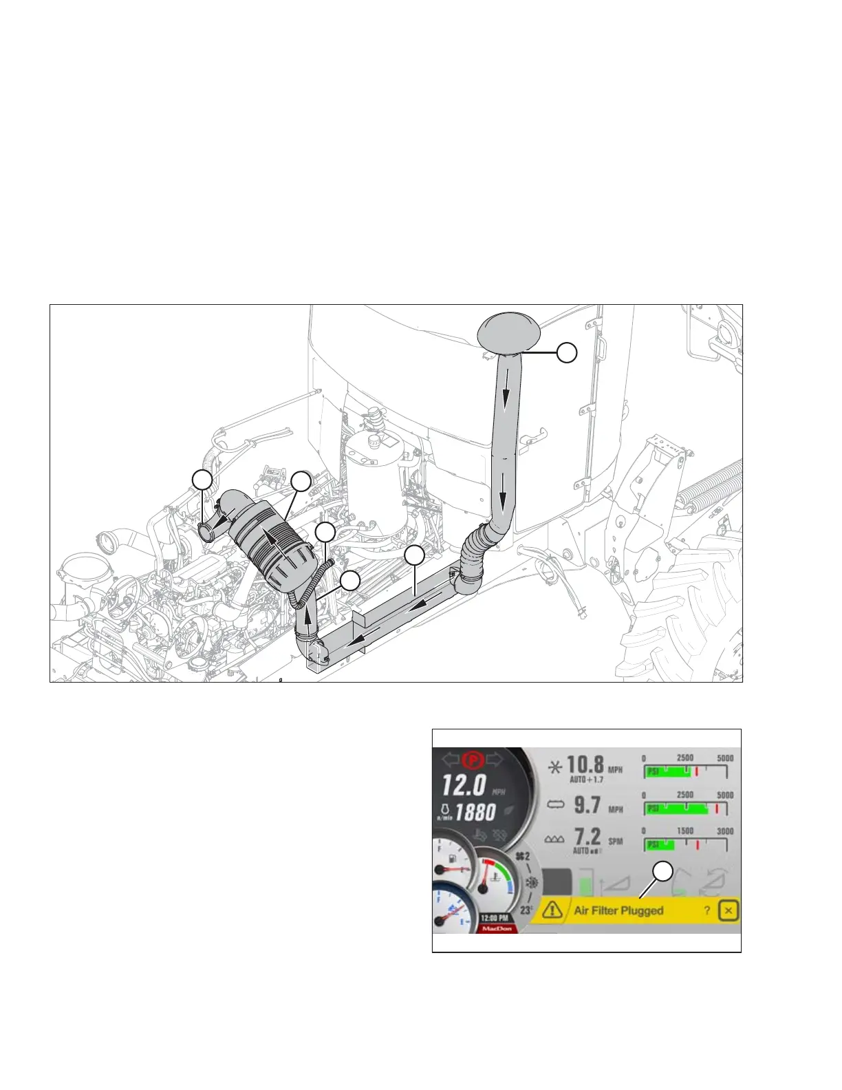 A message (A) appears on the HPT when the engine air filter