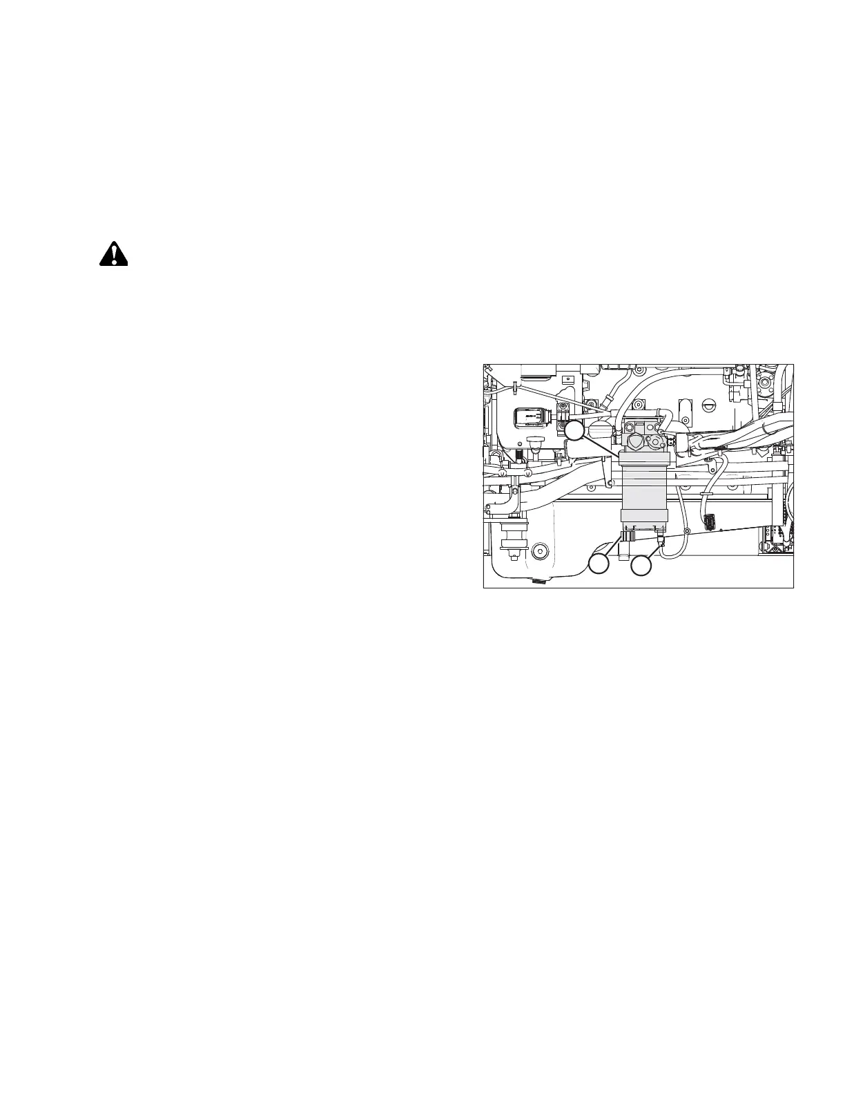 detects water in the fuel and displays an alert on the HPT display. Drain the water and sediment from the separator daily or