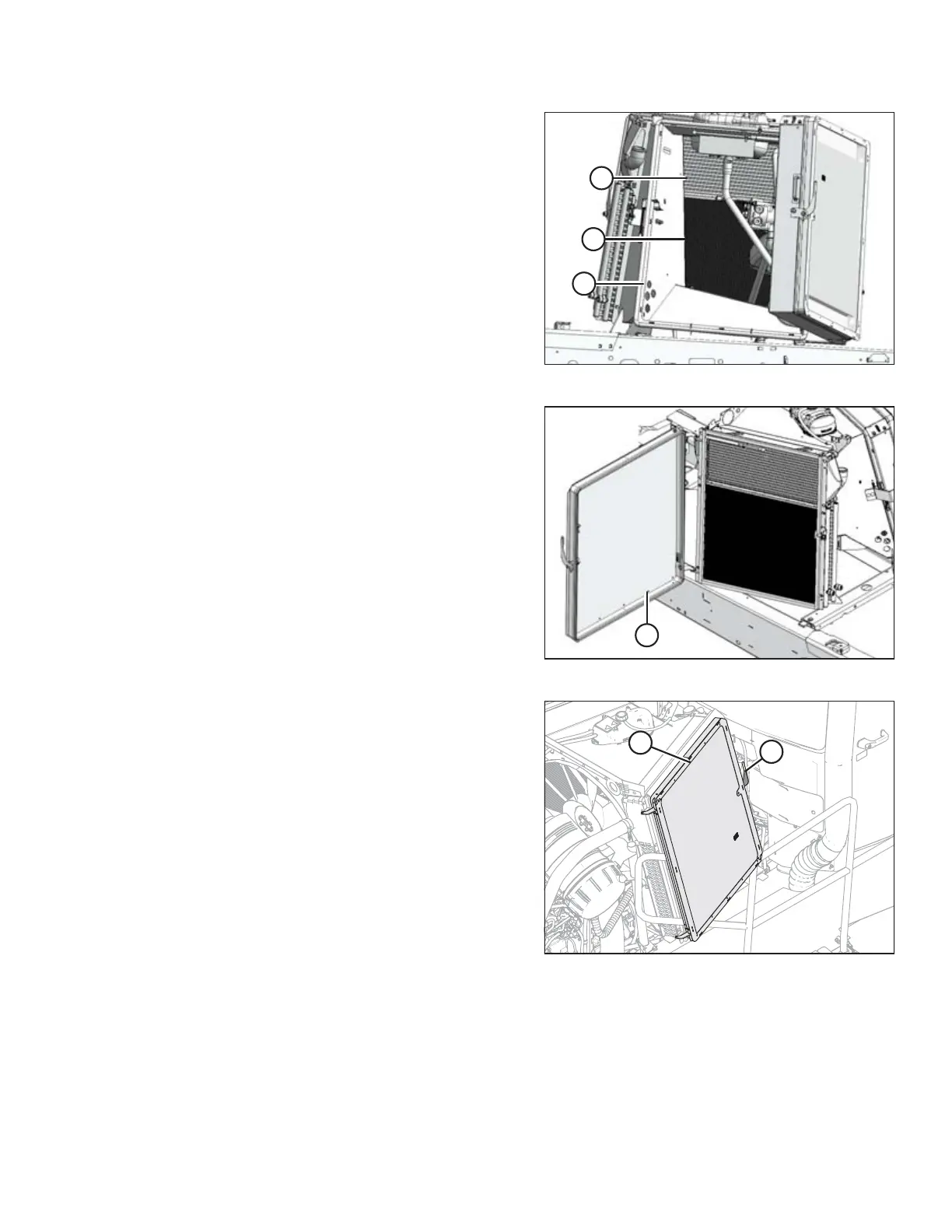 box (A), charge air cooler (B), and hydraulic oil cooler (C).