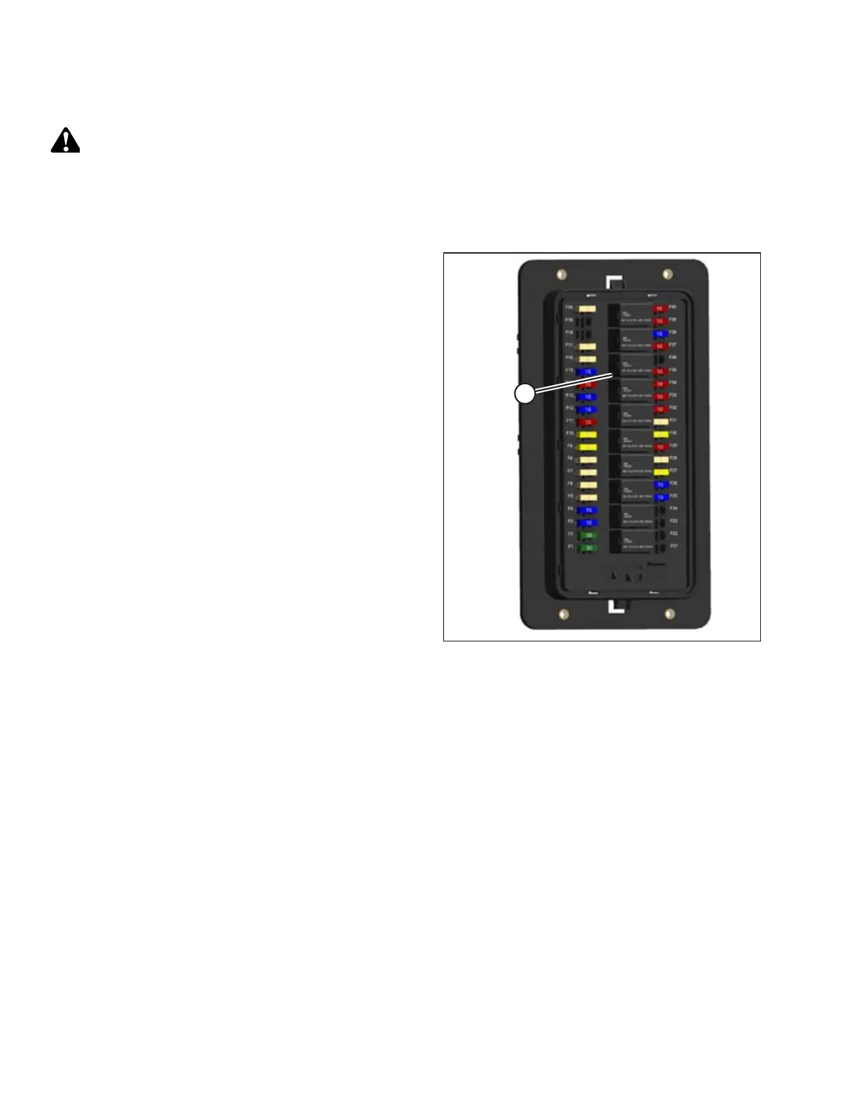 2. Open fuse box cover. Refer to 5.15.7 Accessing Circuit Breakers and Fuses, page 378.