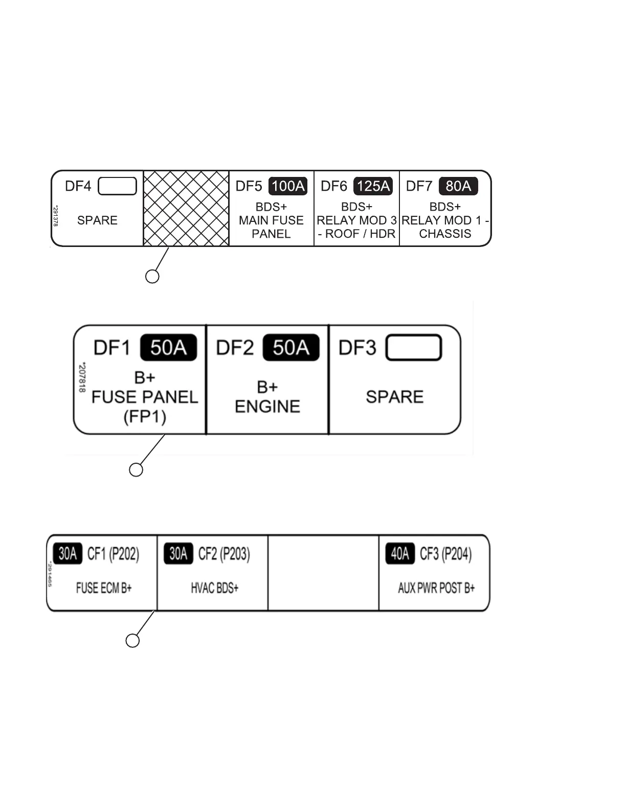 A - Lower AMI Group Fuse Decal (MD #291378) B - Upper AMI Group Fuse Decal (MD #207818) C - ATO Group Fuse Decal (MD #291465)